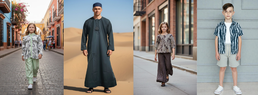 We are a kids wear store in Calicut offering stylish, comfortable clothing for children aged 1–10 years, including boys’ shirts and kurthas, kanduras and girls’ frocks, jumpsuits, and skirts—perfect for everyday wear and special occasions. We alse provide Emirati Kandura and Party Wear kurthas for teenagers and adults.