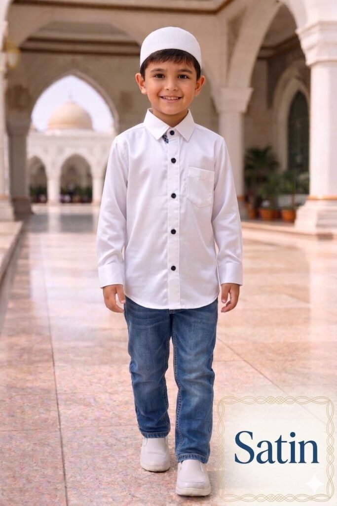 White Satin shirt for boys of age 5-13 years