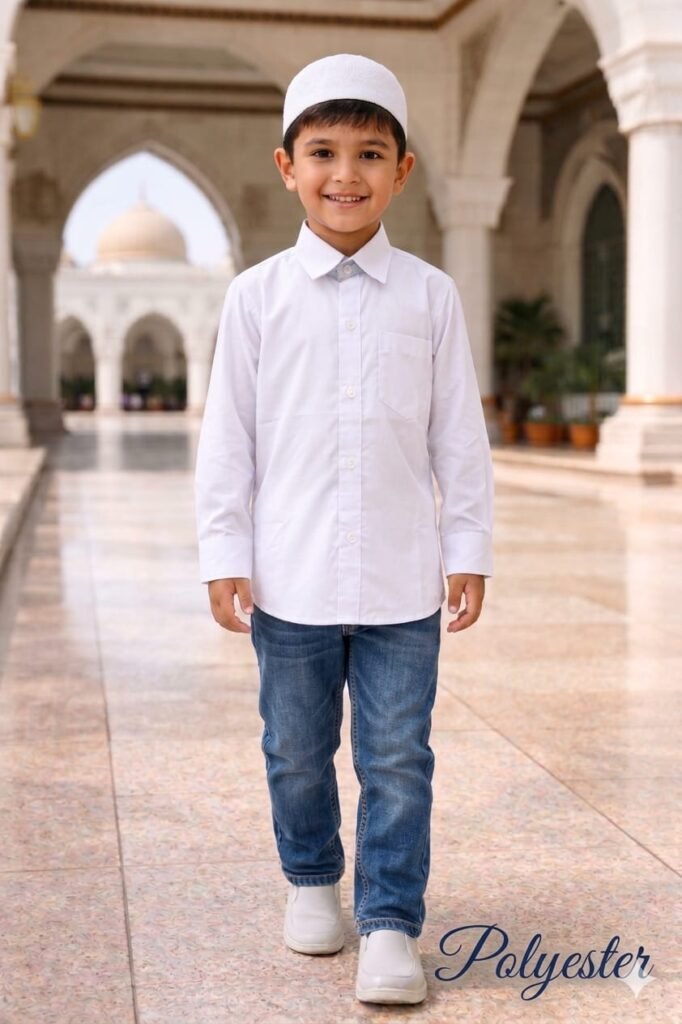 White Polyester shirt for boys of age 7-12 years