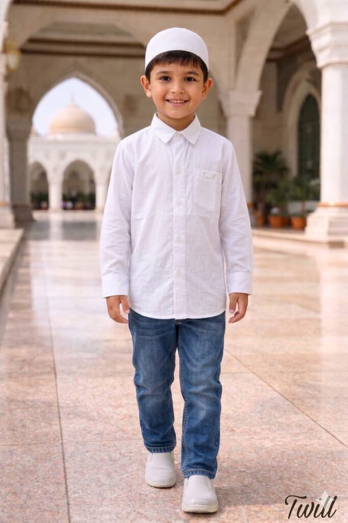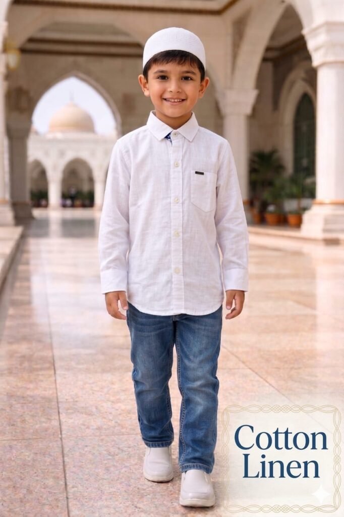 White cotton linen shirt for boys of age 5-13 years